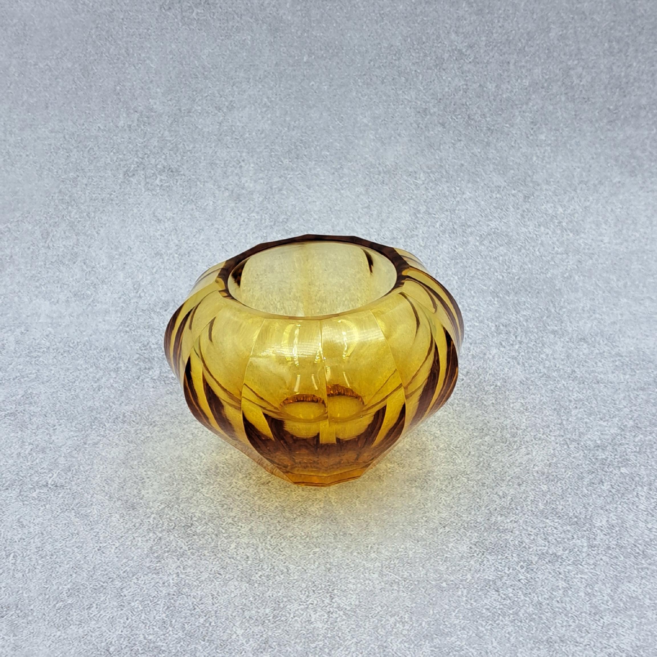Wazonik ze szkła szlifowanego w kolorze miodowym, lata 30. Art Deco